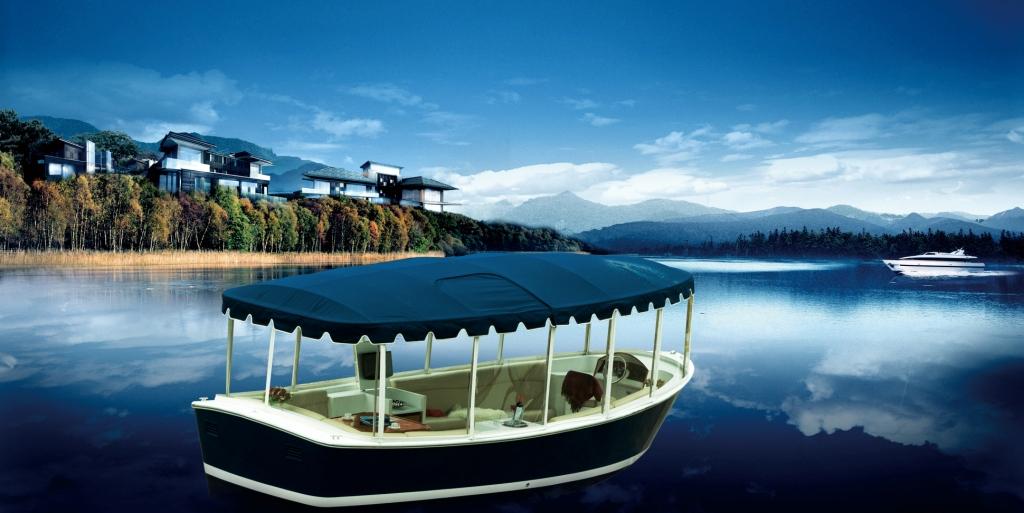 “山水風景,湖泊游艇”。僅0.85米的吃水適合國內各類湖泊,景區。無論是私人聚會,或旅游觀光,12人的載客在小艇中盡顯優勢。