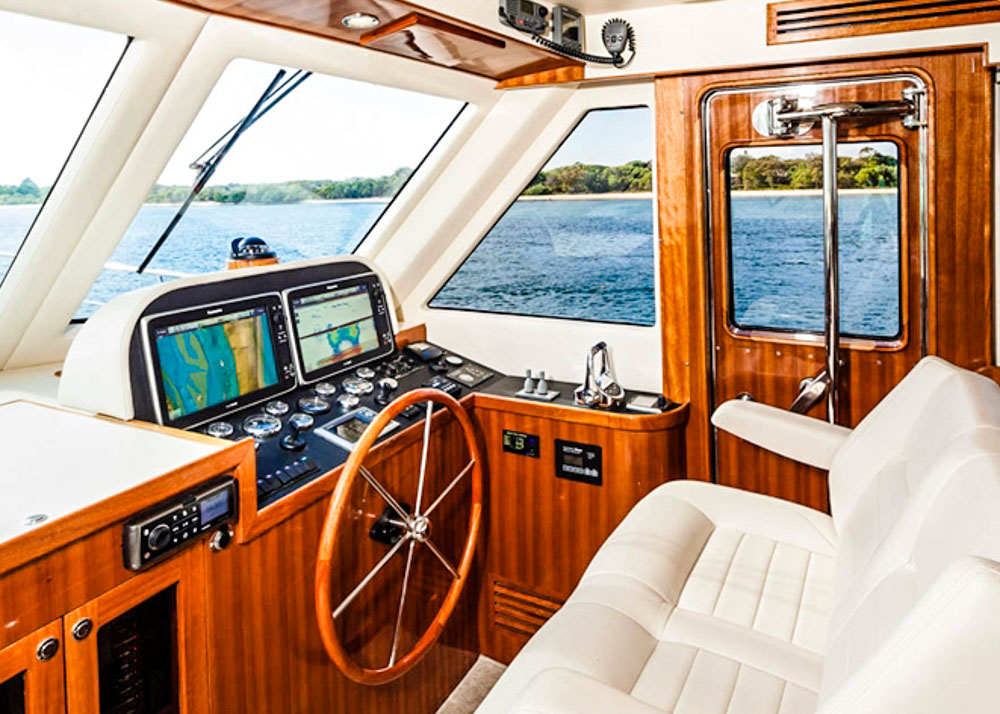 Dubbed the owners boat the Alaska 59 is simple to operate and manoeuvre with bow and stern thrusters and full engine controls available in the cockpit as well as at the helm.